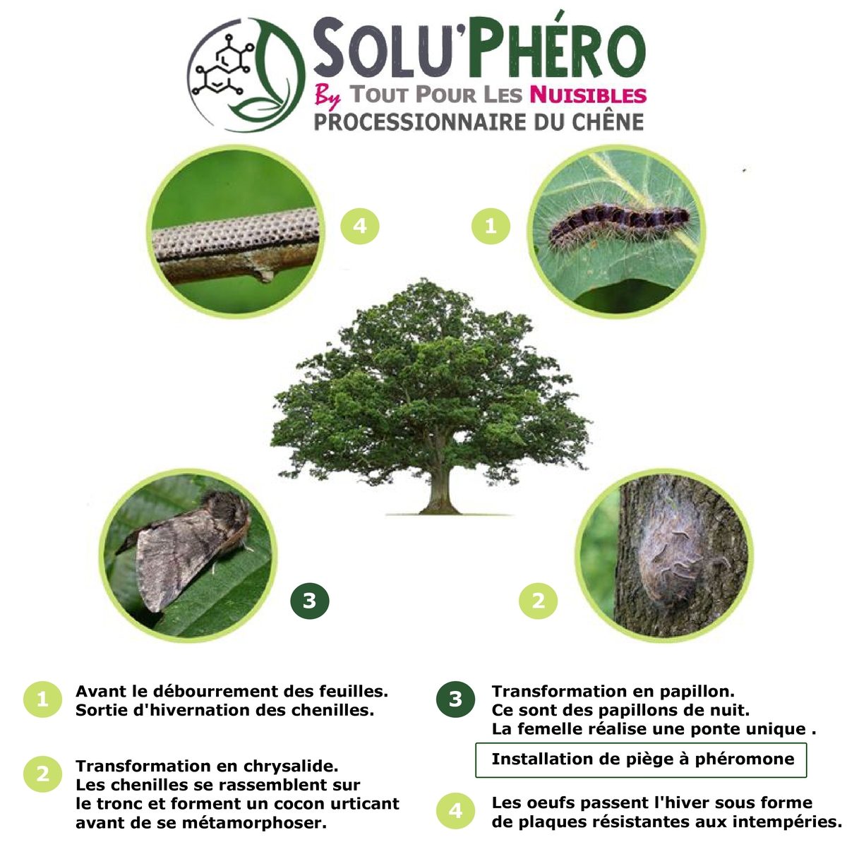 Pour quels nuisibles ? Cette phéromone est spécifique au piégeage des papillons mâles de la processionnaire du chêne